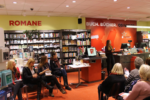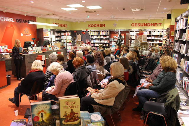 Dann war es soweit und auch „Flawed“ von Cecelia Ahern wurde von mir vorgestellt. Mein signiertes Exemplar von der Buchmesse habe ich jedoch zuhause gelassen und mich in den Osiander Bücherregalen bedient 😀 Das wollte ich einfach nicht mitnehmen, ich denke das kann jeder nachvollziehen. Dennoch habe ich das Buch in meinen so vorgestellt, als wäre es dieses Exemplar gewesen, indem ich gelesen habe. Flawed war ein absolut tolles Buch mit vielen Facetten, welches ich euch aber in einer baldigen Rezension näher vorstellen möchte! Mein drittes Buch aber, lag mir besonders am Herzen. Es kam aber erst ganz am Schluss als vorletztes dran, da es ein Kochbuch ist. Jedoch nicht irgendeines, sondern ein Buch über „Heiße Schokolade„!! Es ist so toll und ihr wisst wie gerne ich heiße Schoki trinke, deshalb war es perfekt zum vorstellen geeignet. Ich habe dann natürlich auch etwas zum probieren mitgebracht, nämlich die Malzschokolade aus dem Buch und die Leute waren total begeistert und kamen immer wieder, um Nachschub zu holen. Wundervolle Gespräche mit den Buchhändlerinnen, Buchkäufe und natürlich den tollen Gästen, waren einfach schön und ich bin wieder einmal froh darüber, was für tolle Buchhändler es gibt, die mich Bloggerin bei sowas mitmachen lassen.
