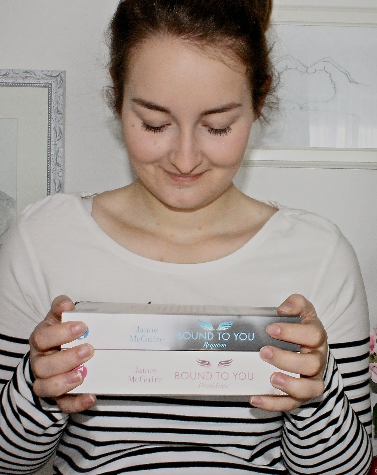 Der erste Teil heißt Bound to you Providence und der zweite Bound to you Reqiuem. Die Cover sind sich ziemlich ähnlich und sind beide sehr schön, wie ich finde! Die Flügel sind wunderschön und auch die Personen sind toll in Szene gesetzt. Normalerweise ist es nicht so mein Ding, mit „echten“ Menschen auf dem Cover, aber hier finde ich es durchaus gelungen. Gefällt mir sehr gut. Die Bücher sind broschiert und sehr stabil, was ich ebenfalls gut finde!