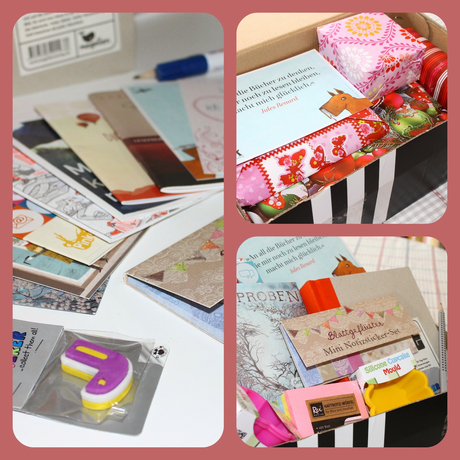 Lena hat mir ganz viele tolle Kleinigkeiten eingepackt. Ganz viele Leseproben und eine Hörprobe,